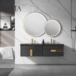 VAMA Nhà Máy 1000 Mét Hiện Đại Treo Tường Đơn Bồn Rửa Màu Đen Tủ Phòng Tắm Với Thiêu Kết Bề Mặt Đá Countertop 305100
