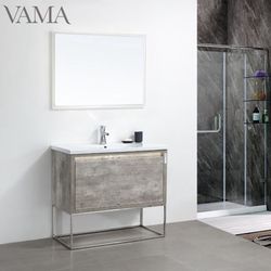 Vama 36 Inch Nhà Máy Cung Cấp Sàn Gỗ Rắn Gắn Đơn Bồn Rửa Tủ Phòng Tắm Vanity Canada A220636