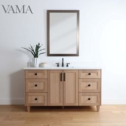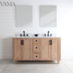 Vama 60 Inch Thiết Kế Mới Sàn Gỗ Rắn Gắn Nhà Vệ Sinh Đồ Nội Thất Gỗ Phòng Tắm Vanity Toronto A220660